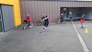 Profitant d’un soleil qui se fait rare en ce moment, les élèves du CM1 de madame Mandry ont montré leurs talents de cyclistes sur les ateliers dans la cour de l’école.